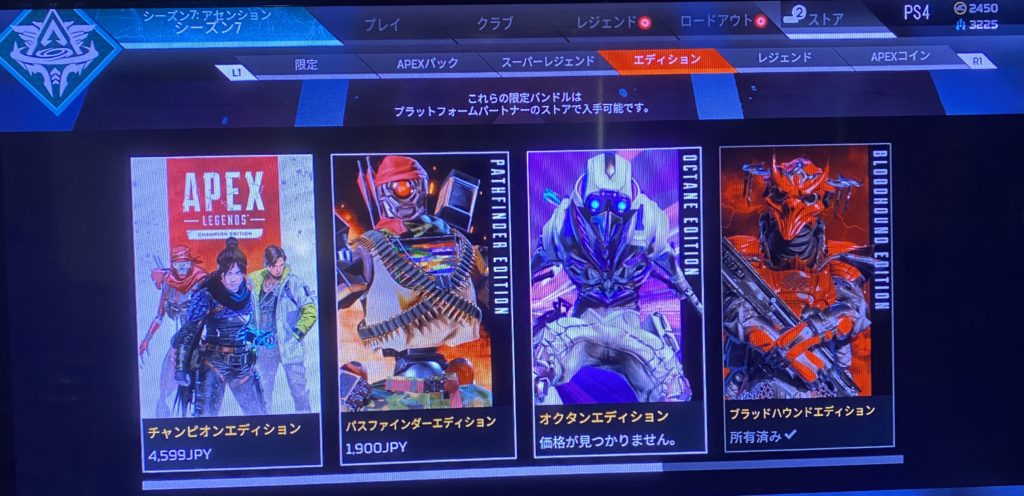今回の画像は購入後の画像ですが、購入前は左のオクタンエディションのように「価格が見つかりません。」と書かれていまして、クリックしても購入できなかったんですね_:(´ཀ`」 ∠):