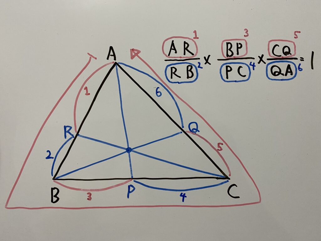 次にチェバの定理の証明をしていきましょう(● ˃̶͈̀ロ˂̶͈́)੭ꠥ⁾⁾