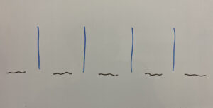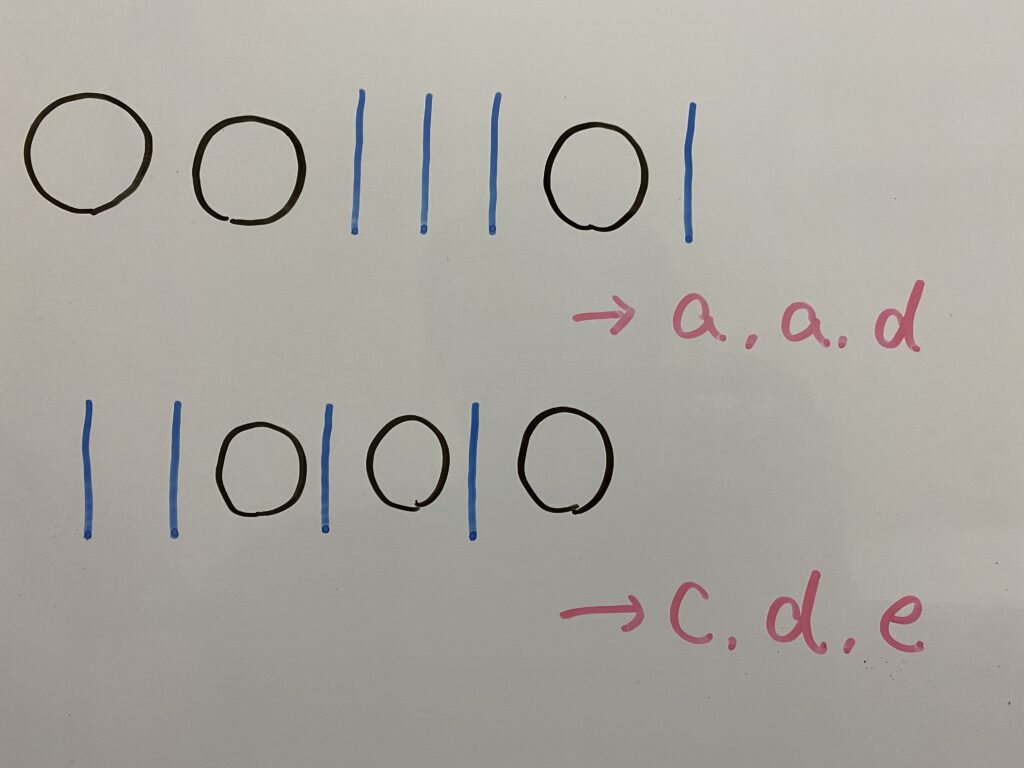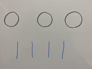 まず3個の”○”と5-1個の”|”を用意します。