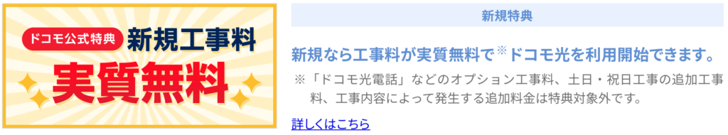新規工事費分のdポイント(期間限定)がご利用開始月1ヶ月目〜24ヶ月目で分割受け取りできるもの。