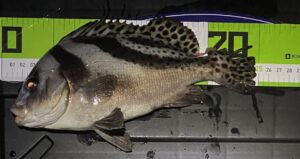 コショウダイx1!立派な鯛が釣れましたよ( ^ω^ )こんなのもヘチに潜んでるんですね。めっちゃ引きました!