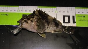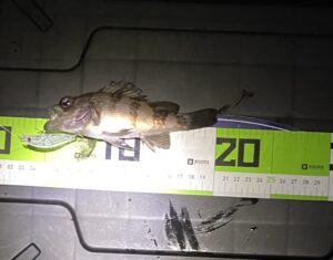 メバルがきました!ヒットルアーはアメミノー48SR-SS クリア、アクションはデッドスローただ巻きです。