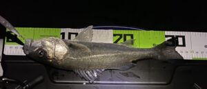 安定のセイゴも釣れました!ヒットルアーはアメミノーSR-SS ピンクヘッドテールグロー、1〜2回転/秒のただ巻きで喰いました。
