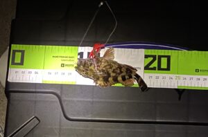 小さなタケノコメバルですね!胴突仕掛けでランガンしてたらかかりました。やっぱ小潮で水位が低いから大きいのはいないんでしょうかね?