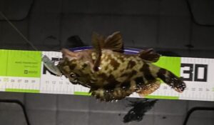 カサゴが来てくれました!沈んでいるテトラの上をゆーっくり流したら喰ってくれました( ^ω^ )