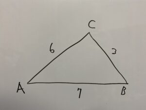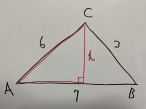 問題:次のような△ABCの面積Sを求めなさい。a=3,b=6,c=7