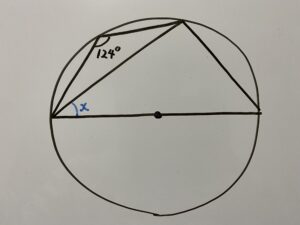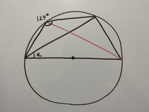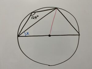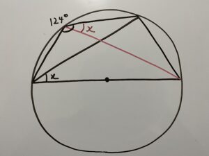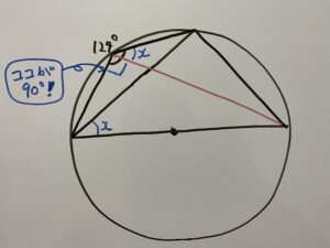 またもうひとつ、円周角の定理の応用で、弧が半円の時は