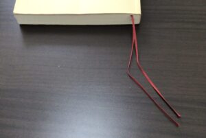 本によっては付いている、しおりとして使える紐(「スピン」「しおりひも」と言います)を後付けできる商品。