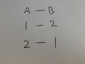 まず赤線の「AとBが同時に起こらない」条件に注目します。同時に起こらないということは