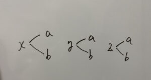 左の()内のx,y,zの3通りから1つ、右の()内のa,bの2通りから1つ選ぶってことですね。