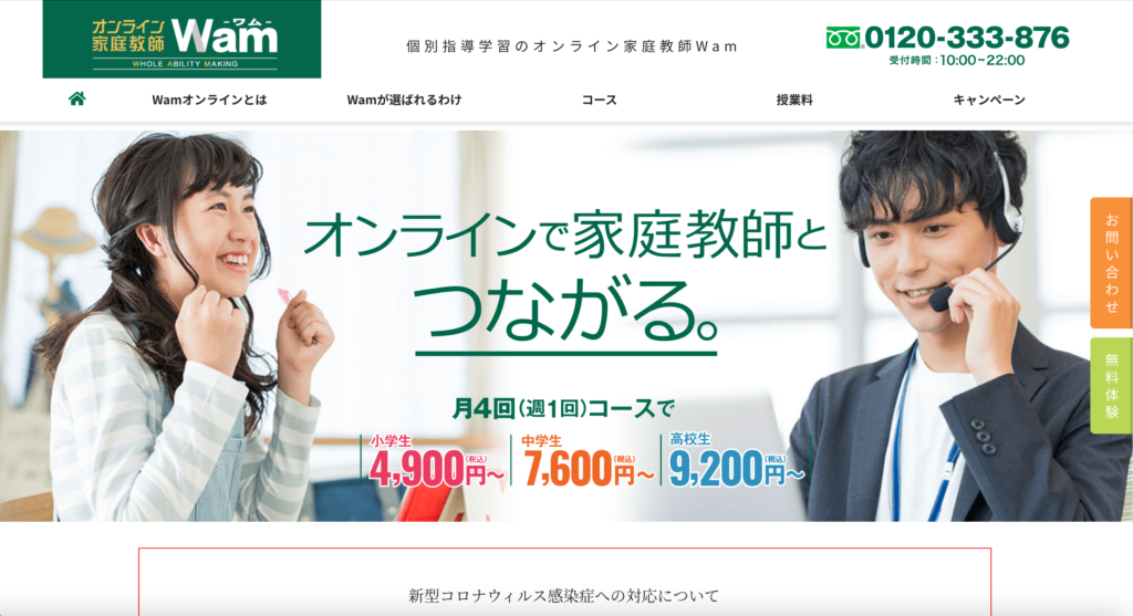 詳細はこちら→密にならず、自宅で学習【オンライン個別指導塾Wam】