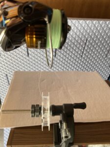 ネットで調べていると、PEラインを巻く下準備として、PEラインを数十分間水にスプールごと浸けておくと書いてあることがあります。が、私は浸けませんでした。