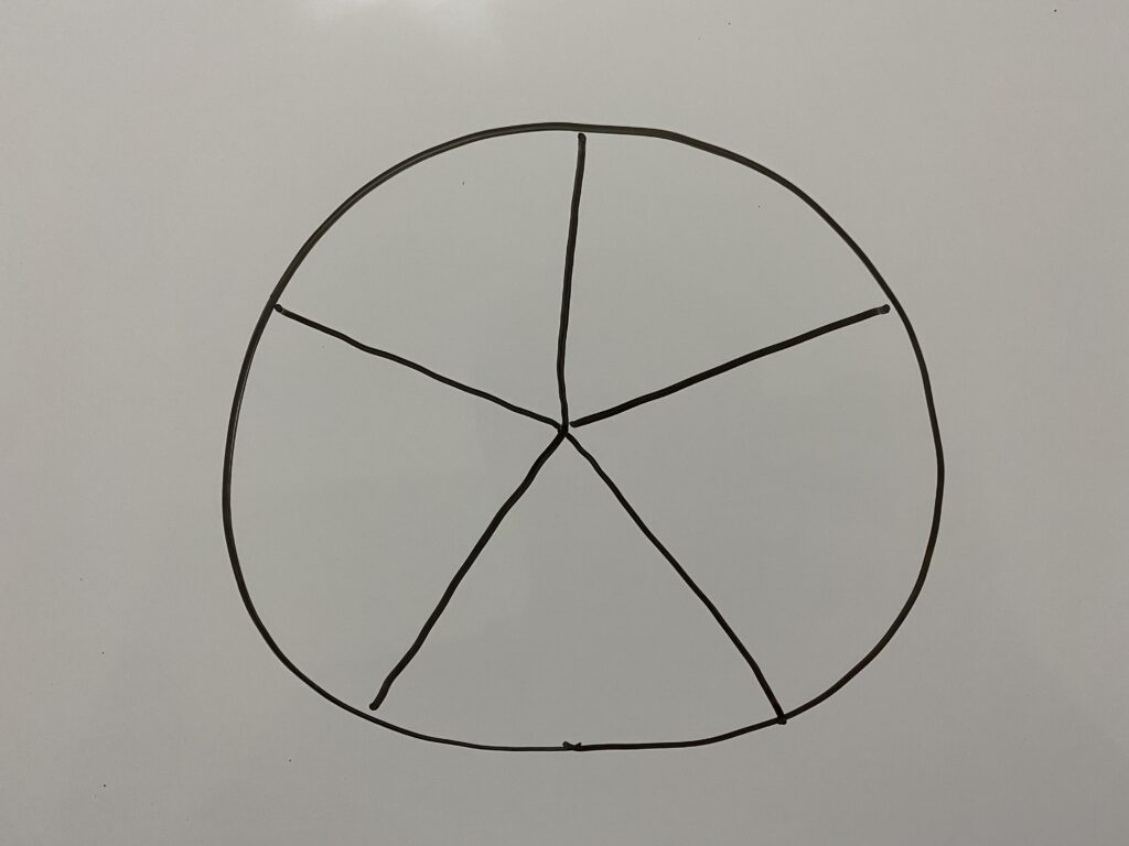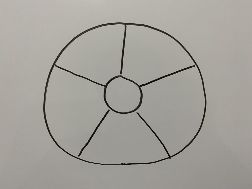 上の図で各部分をそれぞれ違う色で色分けする時その場合の数を求めなさい。