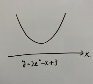 ⑤上のグラフを見てもらえば分かりますが、$y=2x^2-x+3 \lt 0$の部分がないんですね。
