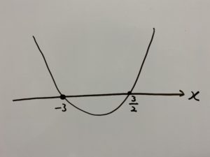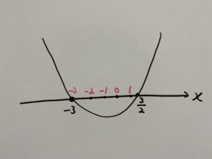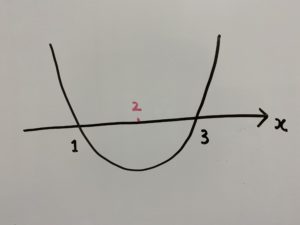 ・$x^2$の係数は1のためこの二次不等式は下に凸。