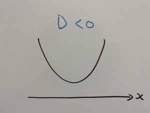 のようになるからです。$x$軸との交点が存在しないわけですから。