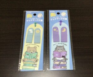 「しおりと付箋別々で買って使えばええやん」とも言えますが、合わせて100円というお値段と、最初からセットだからデザインが合っていますよね。
