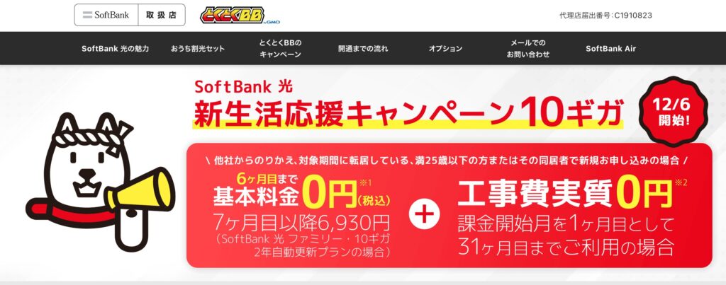 『GMOとくとくBB』でソフトバンク光を契約する特典