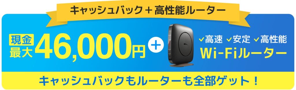 ※キャッシュバックはご利用開始以降になりますが、ルータープレゼントは利用開始日までにお届け予定。