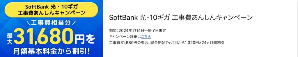特典3:SoftBank光・10ギガ 工事費あんしんキャンペーン