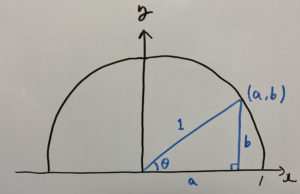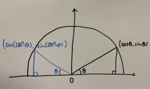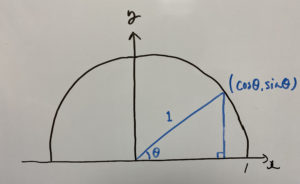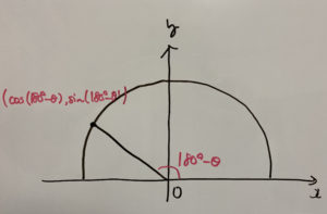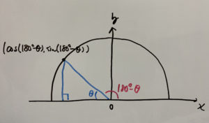 今回は$0° \leqq θ \leqq 180°$なので上の半円のみ扱います。