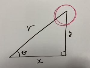 ここで青色の三角形のsin θ、cos θ、tan θを求めます。