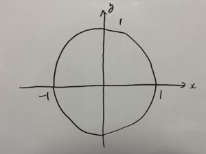 ここでは半径を1とする『単位円』を使うと分かりやすいです。